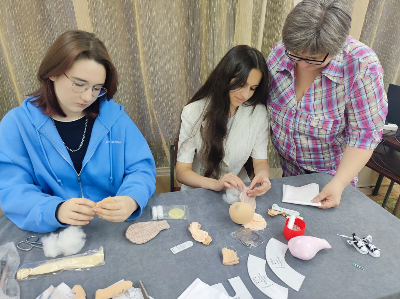 Сшить детали тела куклы с помощью швейноӗ машины. Обратить внимание на то, чтобы швы были ровными и аккуратными.