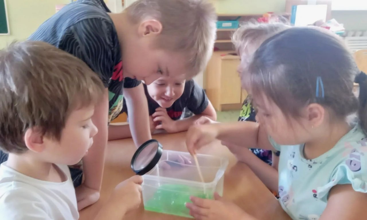 Участники нашего шоу с удовольствием наблюдали за «извержением» вулкана из соды, воды и лимонной кислоты, искренне удивлялись появлению текста на листе бумаги, который нагревался, делали чудо нашего века — слайм (но это уже под чутким руководством воспитателя в детском саду) и играли в волшебников.