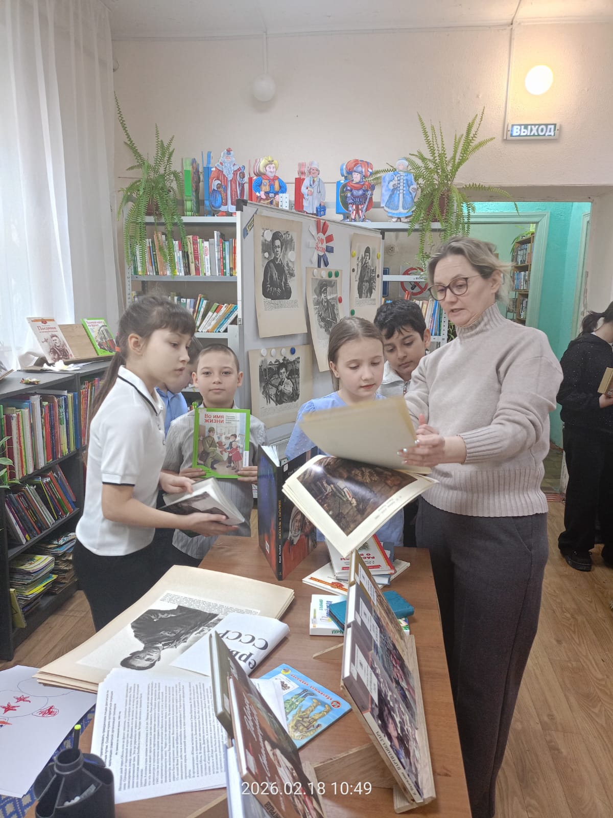 ⭐️В филиале № 6 Центральной городской библиотеки прошло патриотическое мероприятие для учеников младшей школы — увлекательная беседа у выставки «О Родине, о подвигах, о славе».