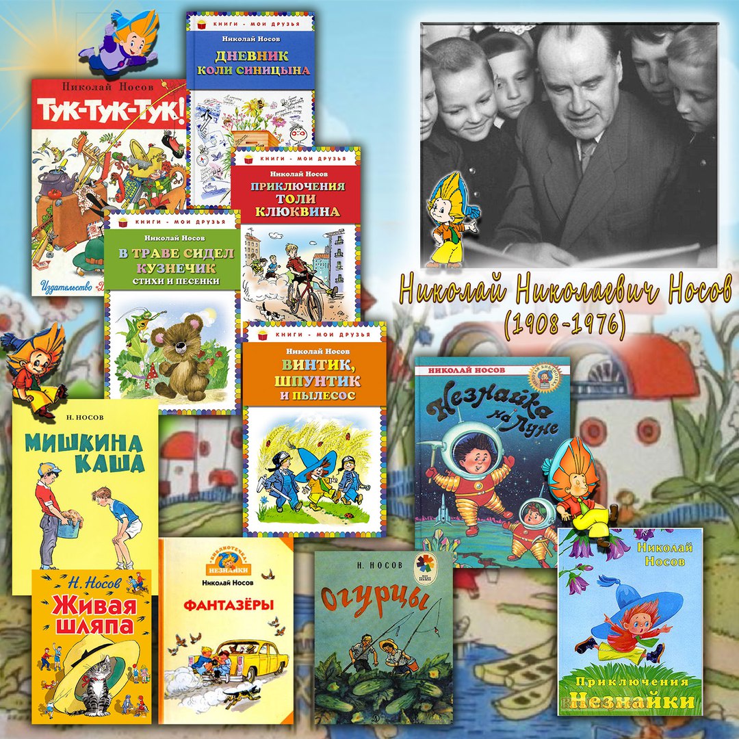 23 ноября родился Николай Николаевич Носов (1908–1976) – детский писатель-прозаик, драматург, киносценарист. Первый рассказ Носова был опубликован в 1938 году, назывался он «Затейники». Затем появились другие рассказы – «Живая шляпа», «Огурцы», «Чудесные брюки», «Мишкина каша», «Огородники», «Фантазёры». Печатались они, в основном, в журнале «Мурзилка». Эти рассказы вошли в первый сборник Носова «Тук-тук-тук». Широкую популярность завоевали и его повести для подростков «Весёлая семейка», «Дневник Коли Синицына», «Витя Малеев в школе и дома». Самыми известными в творчестве писателя стали книги о Незнайке – «Приключения Незнайки и его друзей», «Незнайка в Солнечном городе», «Незнайка на Луне». Во время чтения этих замечательных сказок читатель побывает в Цветочном городе, где живут крошечные человечки, познакомится со взбалмошный Незнайкой, то и дело нарушающим спокойствие в маленьком городке; вместе с Торопыжкой, Пончиком, Сиропчиком, Пилюлькиным и другими героями отправится в путешествие на воздушном шаре, подружится с Синеглазкой и Снежинкой, Медуницей и другими персонажами произведения. За свою творческую биографию Н. Носов также создал и другие произведения: «Повесть о моем друге Игоре» – о формировании личности и характера ребенка, «Тайна на дне колодца» – автобиографическая повесть.